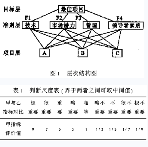 当建立起层次分析模型后,要求出每一层次内各因素对于上一层次有关因素的相对重要性,亦即权重。具体方法是评价者依据各评价因素的具体指标值以及实地考察后的个人主观评价进行综合分析,各因素指标之间逐对地进行两两比较判断,根据表1所示的九级标度将这种判断结果定量化,从而形成比较判断矩阵。