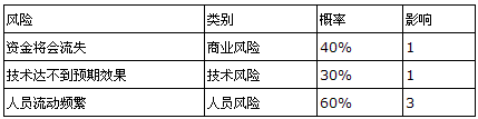 对辨识出的风险进行进一步的确认后分析风险,即假设某一风险出现后,分析是否有其他风险出现,或是假设这一风险不出现,分析它将会产生什么情况,然后确定主要风险出现坏情况后,如何将此风险的影响降低到小,同时确定主要风险出现的个数及时间。进行风险分析时,重要的是量化不确定性的程度和每个风险可能造成损失的程度。为了实现这点,必须考虑风险的不同类型。识别风险的一个方法是建立风险清单,清单上列举出在任何时候可能碰到的风险重要的是要对清单的内容随时进行维护,更新风险清单,并向所有的成员公开,应鼓励项目团队的每个成员勇于发现问题并提出警告。建立风险清单的一个办法是将风险输入缺陷追踪系统中,建立风险追踪工具,缺失追踪系统一般能将风险项目标示为已解决或尚待处理状态,也能指定解决问题的项目团队成员,并安排处理顺序。风险清单给项目管理提供了一种简单的风险预测技术,下表事一个风险清单的例子: