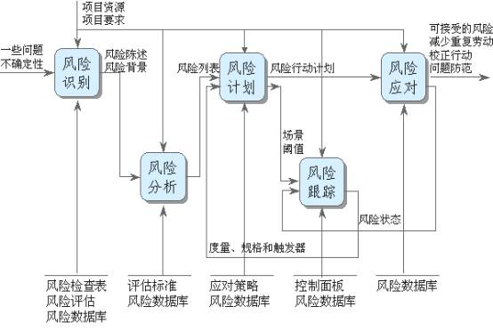 风险识别过程的活动是将不确定性转变为明确的风险陈述。包括下面几项,他们在执行时可能是重复,也可能是同时进行的: