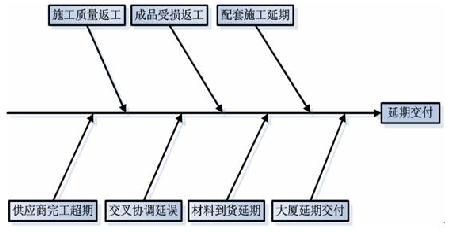 而对于延期交付,项目组评定后认为属于高风险,因此采用鱼骨图对该风险进行了深入的分析,具体如下: