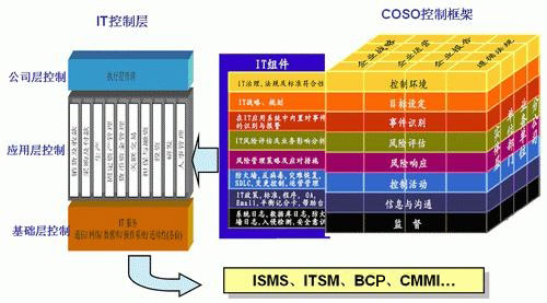 以上三个层次的IT风险管理,在组织中可以分阶段地通过一个个的IT风险控制项目,例如COBIT、ISMS、ITSM、BCP、CMMI等进行实施,也可以选择其中的某些过程进行整合后实施。