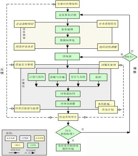 这个框架是IT风险管理框架,也可以称为IT的“游戏规则”,忽略了规则的建立是国内信息化成功率低的根源,我们应当把建立信息化的“游戏规则”看成是信息化的重要内容之一。