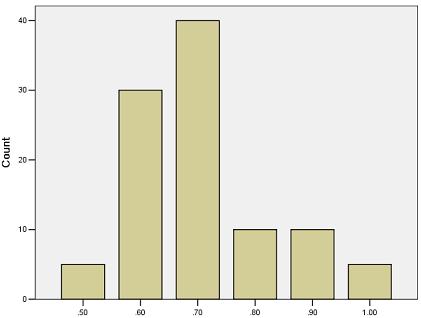 另外一个风险是项目中有一个编码成员是新手,前面已经经过一段时间学习,现在你无法确定该成员到了第三周编码阶段后该成员生产效率是否达到要求,根据历史经验数据和对比项目样本,得到如下数据(如图表示在100个样本中能够达到正常效率0.7倍的有40个样本)