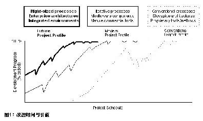 我这里介绍的现代管理方法把集成加入到了设计阶段,并经过一系列可演示的版本发布,于是也使得架构上重要的缺陷更早出现,能够在生存周期目标的上下文中被解决。顺流而下的集成噩梦被避免了,同时避免的还有以后的补丁和软件修正。结果是一个更为健壮和可维护的产品的按期发行,于是产品在经济上成功的可能性也更大了。