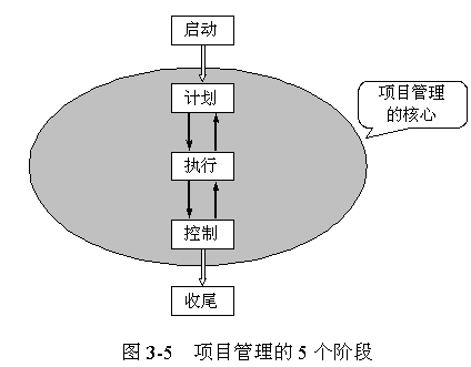 项目管理过程(project management process)有5个基本的管理过程——启动、计划、执行、控制和收尾,如图3-5所示。