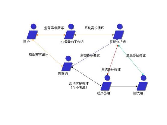 RUP中强调的循环概念 是针对于这种情况提出的,通过项目小组之间各种角色的循环,实现对用户需求变化的问题解决。如下图