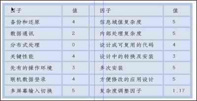 接着,估算14个复杂度加权因子(Fi,根据问题对项目的影响取值范围是0~5),表3给出了因子值。