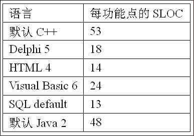 下面以IBM模型为例来进行计算。 为了计算,我们应当利用逆向法将功能点转化成一个等价的SLOC数值。这一步可以使用表4的语言等价表来完成: