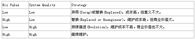 依据<<Software Engineering>>第9版中关于软件进化的说明,软件维护的决策要从市场价值(Business Value)和系统品质(System Quality)两个维度考察。