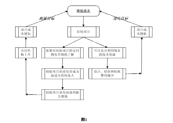 从理论上说,该问题可以通过在初始项目中进行详细的风险分析而得以解决,但实际上,由于组织的外部环境和内部业务变化得越来越快,这种变化是难以有效地进行预测和评估的,在软件项目中,由于项目交付物(软件产品或应用系统)非常复杂,在其使用过程中不断提交新版本几乎是不可避免的。另一方面,在后续项目的谈判过程中引入另一家供应商以增强竞争性的做法其效果也不显著,这是由于在后续项目特定的环境和交付物要求下,其它竞争者的项目实施成本一般均高于初始项目的承包商,其原因是显然的:第三方厂商需要付出诸如时间、人力等资源来理解初始设计,这种资源投入有时甚至高于重新设计一套系统。
