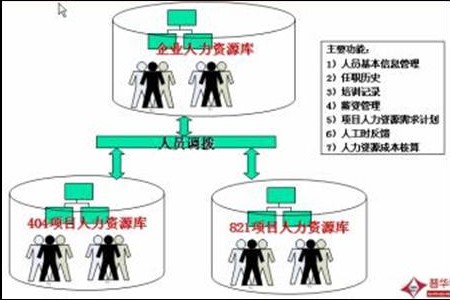 人力资源管理包含企业级和项目级 2 个层次,达到优化企业和项目人力资源配置,做到企业和项目人力资源的动态管理。主要有如下功能:1)人力资源角色分类编码;2)企业、项目组织结构编码;3) 人力资源基本信息管理;4) 人力资源薪资管理;5)人力资源调拨管理;6)项目人力资源成本核算。如下图所示: