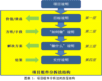 项目组件分拆法的主要目的是把项目分拆成主要的模块或组件,这些模块或组件在完成整合后将成为整个项目的终交付。透过PCDM的应用,可以在短的时间内建立项目的终交付定义。对于一些概念型项目,在项目起动阶段把握项目的终交付,能够更有效地建立项目的范围,规范地管理开发过程中所要求的变动。