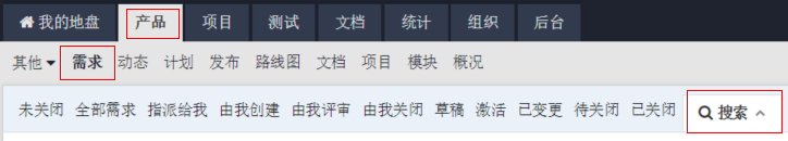 菜单位置如上图:产品-需求-搜索