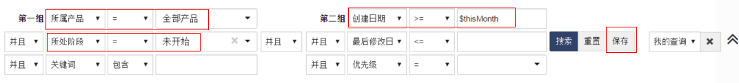 点击保存会把查询条件存下来方便以后再次查询。