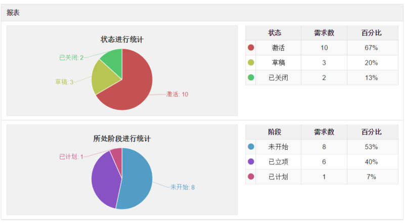 这里多可以使用6个条件来组合查询,不使用某个条件则让它空着。如上图我要查询我权限范围内所有产品在本月新建的还没开始研发的需求。