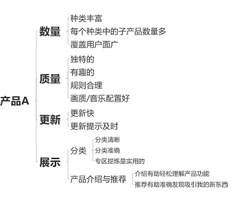 体验系统解构的模块有:数量、质量、更新、展示方式等。