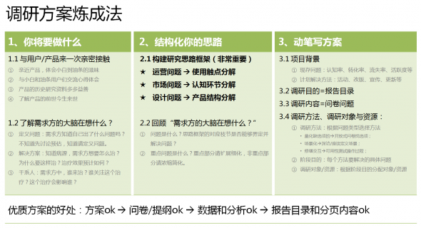 【结语】 这样的方案可能要耗费一些脑力,要花一些时间,但它有巨大的好处,试想下当你的方案确定了,能走在一条正确的研究路上,是一件非常幸福的事。 笔者期待着更精辟的智慧调研方案,横空出世。