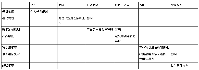 下表总结了规划的多个层面,还有各个层面规划流程中的活动: