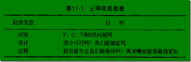 项目检查有三种类型:即状况、设计和工作过程检查。每一种检查都有不同的目的。状况检查主要检查是否达到P、C、T、S目标;在进度计划和预算之内吗?范围正确吗?绩效的要求没有问题吗?