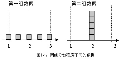 如果有两组数据,它们分别是1、2、3、4、5;和3、3、3、3、3;虽然它们的平均值都是3,但是它们的分散程度是不一样的(如图1-1所示)。如果我们用s来描述这两组数据的分散程度的话,第一组数据的s为1.58,而第二组数据的s为0。假如,我们把数据上的这些差异与企业的经营业绩联系起来的话,这个差异有了特殊的意义。