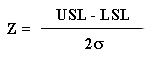 Z有几种表达形式:简单的一种是用测量数据的标准差s与顾客要求的上限(USL)和下限(LSL)的关系来表达,其公式为: