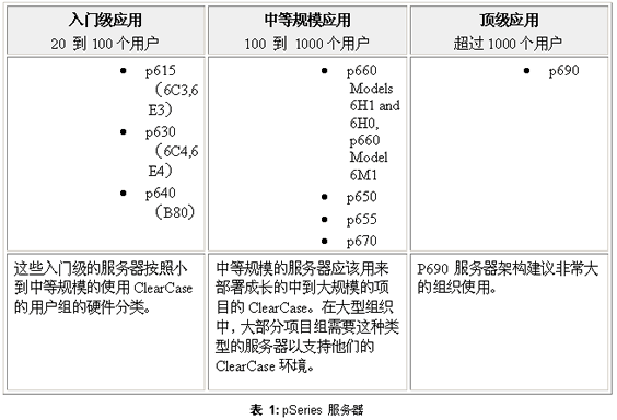 在入门级服务器的列表中, p615和p630 服务器比p640 (B80)更加强大,因为它们采用了POWER4芯片组,对于ClearCase操作有更强大的I/O能力。