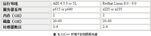 这里我们推荐的视图服务器的配置如表5所示: