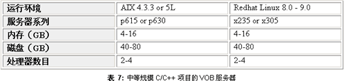在这个情景下处理的文件数目相当大(250,000个源文件,不包括二进制文件)。此时项目使用一个专门的二进制VOB服务器也是值得的。由于项目要处理二进制文件,它需要一个高可用性和快速的磁盘系统。在这种情况下,要确保你有RAID或者使用ESS用于存储。 项目有几个视图服务器,允许多个开发人员登陆同一台机器完成开发和单元构建工作。