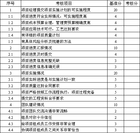 这是一个百分制的考核,如果项目经理能够达到60分算合格,达到80分良好,90分。