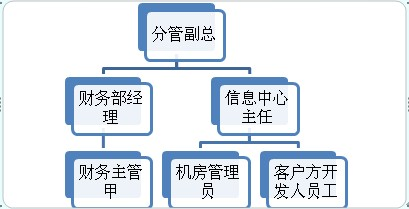 在项目干系人识别中,对客户方项目干系人的识别和分析更是重中之重,在本文中将重点集中在对客户方干系人做重点分析。通过对上面案例分析,可以画出一张客户方项目干系人结构图,打比方说这个客户中所有干系人的情况如下图所示