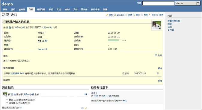 和代码管理的整合:开发人员可以不登录任务管理平台,直接提交代码修改 需求/任务/缺陷 的状态