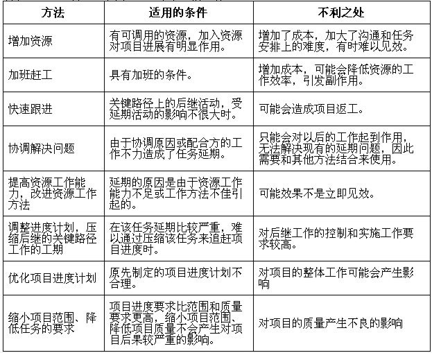 项目实施过程中出现进度偏差是在所难免的,实施进度控制要求能对偏差能进行有效的控制,提出相应的解决方案,使之有利于项目的进展。通常我们可以采取的措施有: