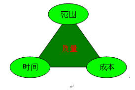 综合以上的关系,是的“项目管理三角形”,说明了项目的范围、时间、成本(资源)、质量这四个关键因素之间是相互关联、相互影响的。其间的关系这里不再展开详述。