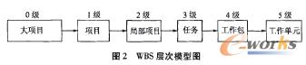 WBS的层次模型如图2所示.从0级到2级,都属于产品(交付物)的划分;2级到3级是将局部产品