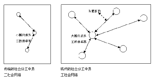 4.现代的社会分工中,虽然个体的效率增加了,但是增加了其它的成本。如果处理不好如因责任而导致的扯皮与内耗的成本,很有可能造成整体效率比传统模式更低下。