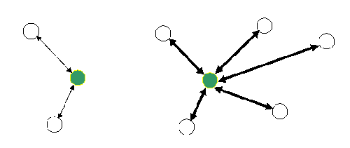 抱着负责任的职业精神,会在职业化的社会分工中建立更多的工作网络关系,而且建立的网络关系的质量远非一些推托责任的人可比。如上图所示:左边是推托责任的员工的工作关系网络,右边是负责任的员工的工作关系网络。可以看出负责任的人的网络关系的质量与密度好的多得多。