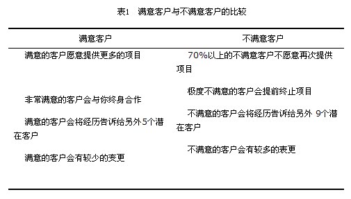 项目客户关系管理实时的好坏的一个直接结果是产生两种不同的客户,满意的客户和不满意客户。实践证明,满意地客户所带来的收益远远大于不满意的客户(见表1)。此外,留住客户的持留成本是获得新客户的成本的1/6[6]。对于以客户为驱动的项目而言,有一点是非常重要的:尽可能使客户满意,留住老客户,而不是盲目的开发新客户。