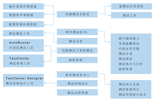 实验室建设的根本目的是培养学生的动手能力和学习能力,培养学生掌握软件测试的基本理念与测试技能,具备一定的软件开发/测试经验,成为满足软件测试岗位要求的实用型人才。针对学校对专业软件测试实验室建设需求,在现有的软件测试理论课程基础上,提供了丰富的实践课程体系。