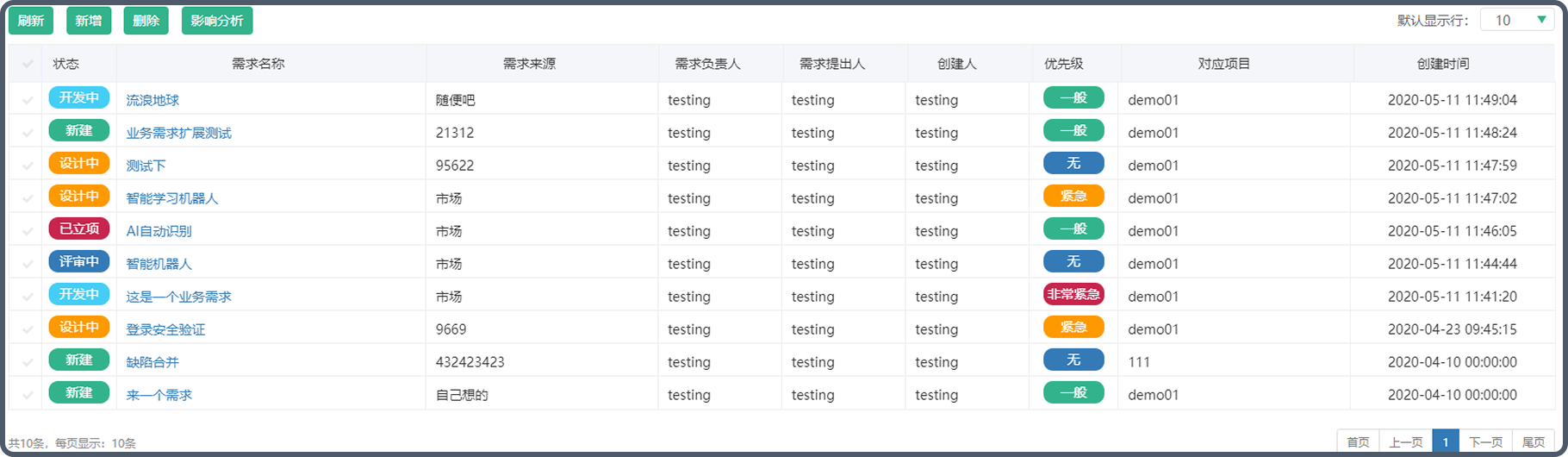 需求评审通过,项目立项后,创建项目,需求与项目关联。