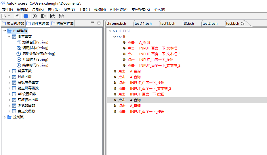 4.每一步都可以看到操作的对象是哪一个,操作的对象通过AutoRunner的对象指示器来显示。