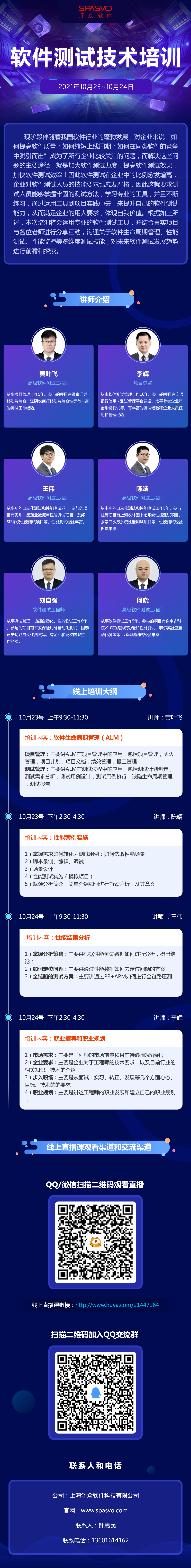 《免费软件测试技术培训线上直播》2021.10.23~2021.10.24,主要议题是软件生命周期管理和真实性能测试案例分享,干货满满!不见不散!