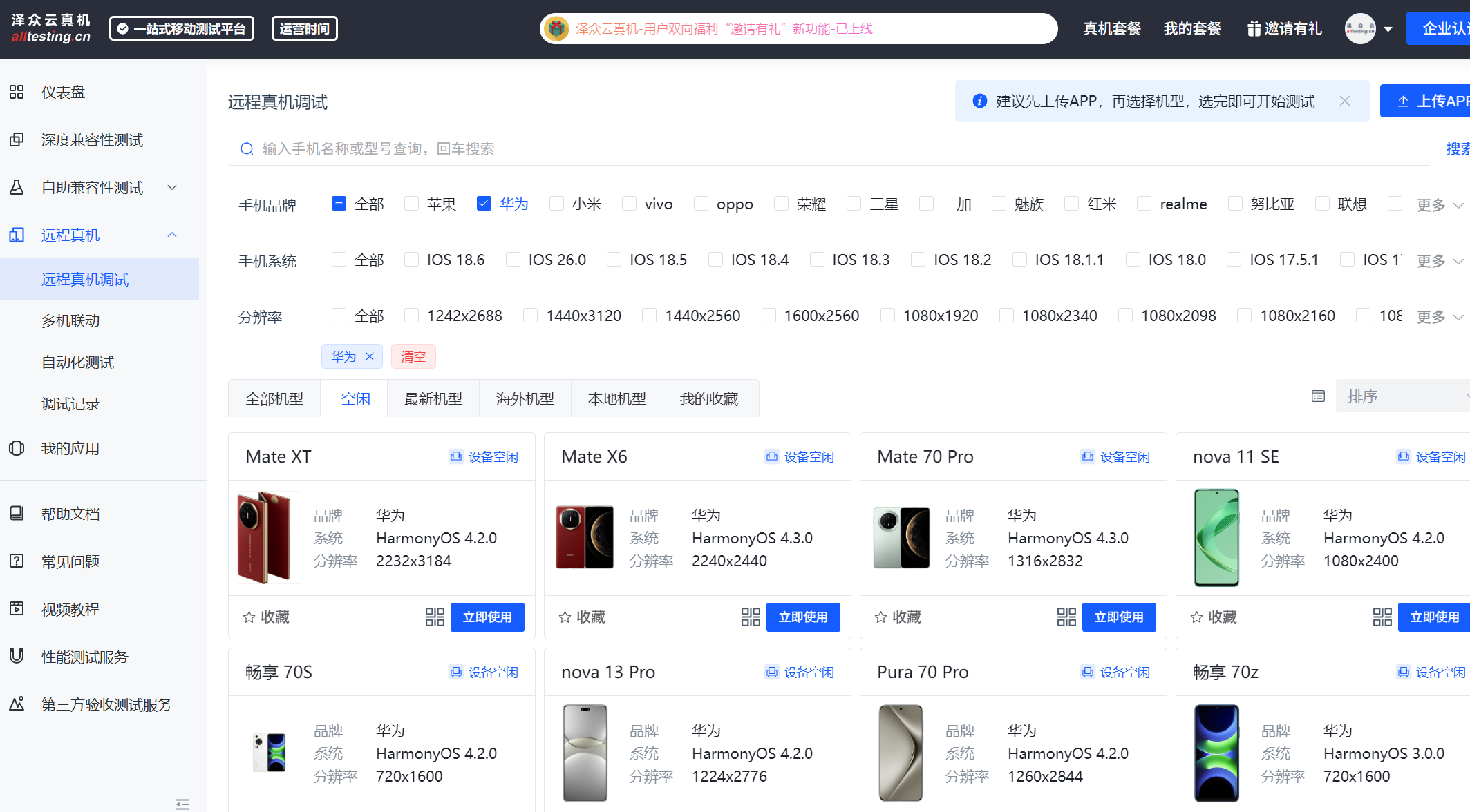 泽众云真机平台始终以用户需求为导向,积极收集用户反馈,不断优化平台功能和服务。对于市场上新发布的机型,平台技术团队也在持续关注,并及时响应用户的测试需求。如果用户发现所需机型尚未上线,可以通过反馈热线021-60725088-8054或邮箱sales@spasvo.com向平台反馈,平台将及时将相关机型纳入采购清单,进行新一轮的升级。