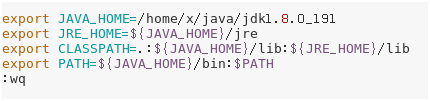export JAVA_HOME=/home/x/java/jdk1.8.0_191