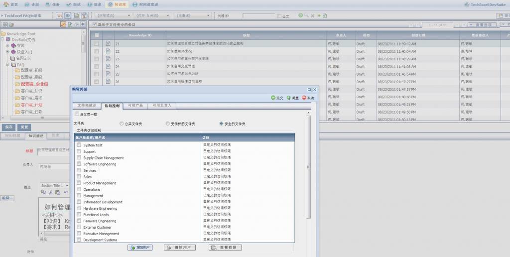 1、首先对于那些制度类的,合同类的文档,还有培训类的文档,我不详细介绍了,因为这些文档不需要所有人都需要看到的,甚至有些需要保密的,更加不能让很多人看到了。通过KnowledgeWise可以保存到只有相关人员才能看到的地方。KnowledgeWise可以为每个人针对每个文件,每个文件夹设置不同的权限,比如只读,可以编辑,可删除,可创建,当然还有不可见。所以你想设置如何复杂的权限组合都是没问题的。(权限管理)