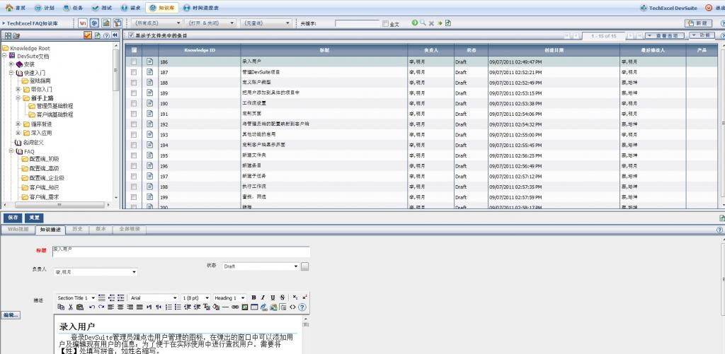 DevSuite系统中的文档管理工具叫做KnowledgeWise,在以“知识为核心” 的理念中属于核心地位,因为软件开发过程中其实每个阶段都需要接触文档的,从需求文档到设计文档到开发文档到测试文档再到发布文档维护文档,文档自始至终一直是需要的,而且同一个文档在整个过程可能是不断发生更改的,所以通过KnowledgeWise跟踪到每个更改对于开发过程来说或是及其重要的。