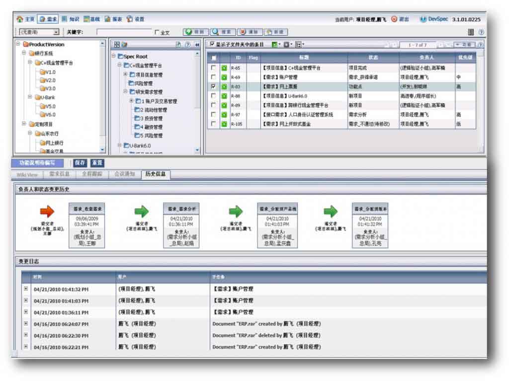 这部分的工作主要是在DevSpec进行,DevSpec是主要用来管理需求和分配需求让开发去开始做的,它会对每个功能(不管是客户的,自己的,或者研究竞争对手得出的)新建一个条目项,每个条目都会有自己的属性,包括标题,负责人,状态等,反正你想加什么属性都可以自定义的。然后负责人登录系统可以看到分配给他的条目,他处理完了必须把状态改到下一个状态,并且分配到适当的其他负责人。对于测试而言,我们设置有一个状态叫做“测试审核”状态,一般一个需求点到了这个状态,咱们设计测试人员会去处理这个需求,处理的方式,一般是从原始的文档入手,去看看现在的设计是不是符合原始的文档,如果有出入的话,他会去和设计人员交流一下,然后把这个条目打回“需要重新设计”状态,设计人员弄完会重新更改状态,后测试人员审核通过后,可以进入“待开发“状态了。