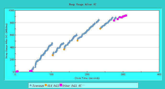 从gc日志中看到开始运行时,每隔一段时间会进行垃圾回收,不过内存堆栈的使用还是越来越大,后内存不够用,频繁做Full GC引起服务器停止响应。