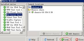 2. 通过测试仪器的GUI控制界面装入TLSServer测试套件,如图1所示。