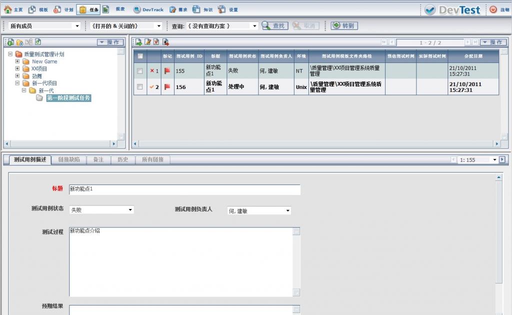 完成了需求设计阶段,要开始进入编码阶段了,虽然说开发与测试需要同步的,但是功能还没做完也没法同步去测吧,不过还是有事做的,是可以同步开始写测试用例,这个用到DevTest工具了。DevTest主要用于管理测试用例,以及根据测试用例来进行在不同环境下、不同时间下和不同的范围里进行的手动测试与自动测试,并且可以生成报表供评估测试质量和产品质量。
