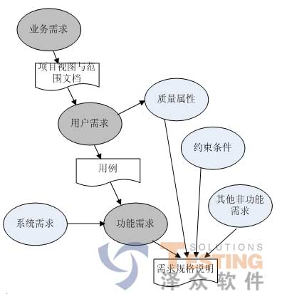 软件需求包括三个不同的层次?业务需求、用户需求和功能需求?也包括非功能需求。业务需求(business requirement)反映了组织机构或客户对系统、产品高层次的目标要求,它们在项目视图与范围文档中予以说明。用户需求(user requirement) 文档描述了用户使用产品必须要完成的任务,这在使用用例(use case)文档或方案脚本(scenario)说明中予以说明。功能需求(functional requirement)定义了开发人员必须实现的软件功能,使得用户能完成他们的任务,从而满足了业务需求。所谓特性(feature)是指逻辑上相关的功能需求的集合,给用户提供处理能力并满足业务需求。